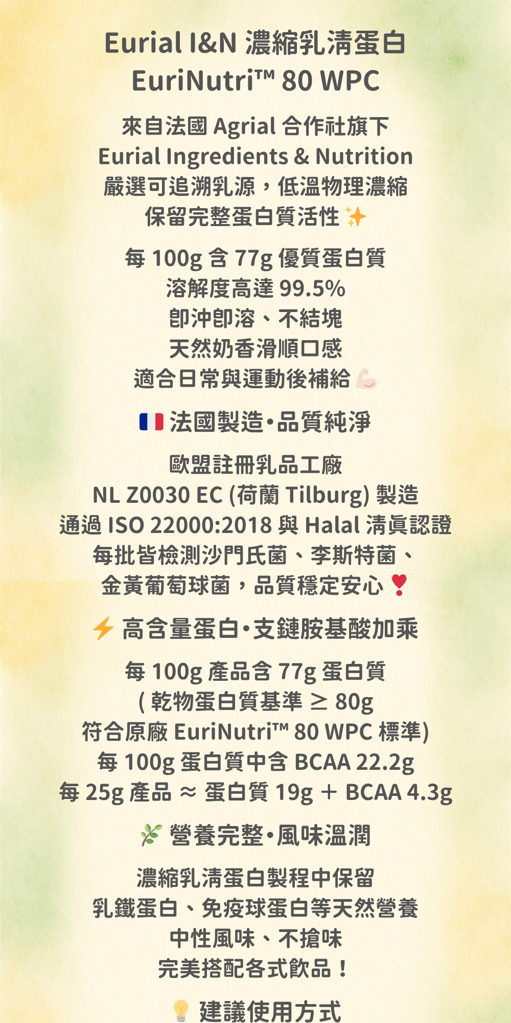✔️ 來自法國 Agrial 合作社乳源,ISO 22000 & Halal 雙認證