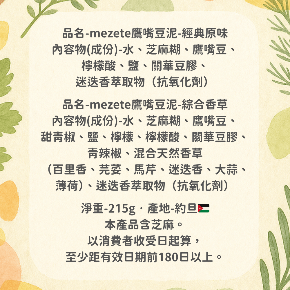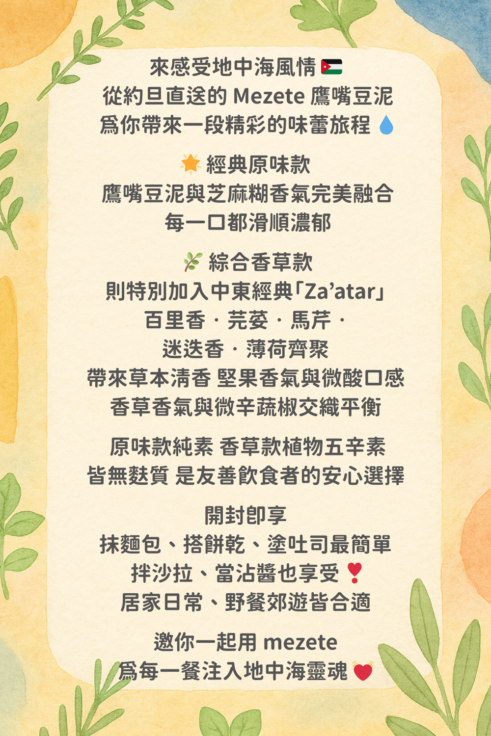 ✔️ 綜合香草款:中東經典 Za’atar(百里香、芫荽、迷迭香、薄荷等)帶來香草氣息