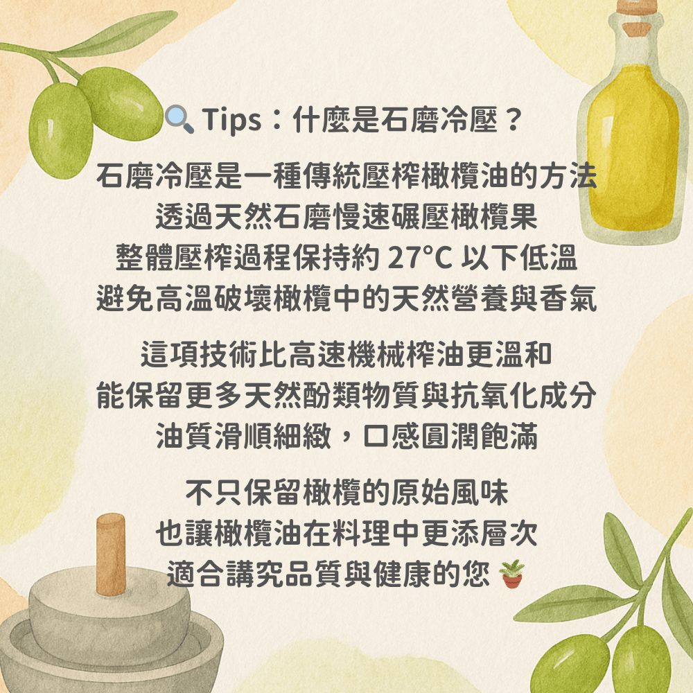 ✔️ 石磨冷壓技術,完整保留橄欖果香與營養