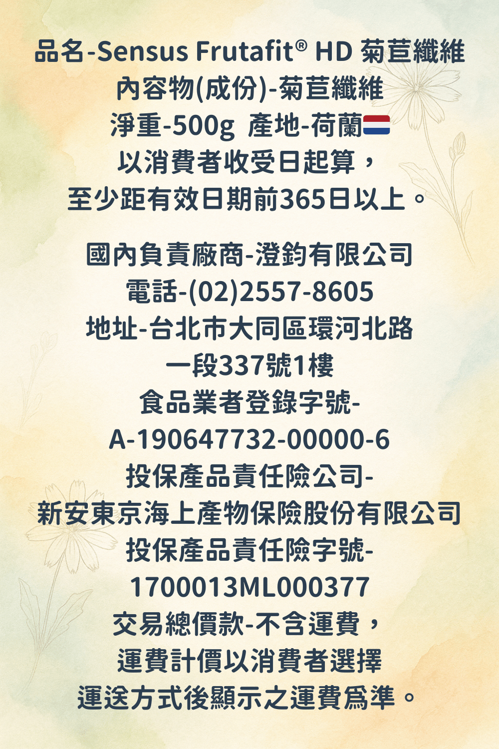 ✔️ 源自荷蘭皇家 Sensus,100% 天然菊苣根萃取 🇳🇱