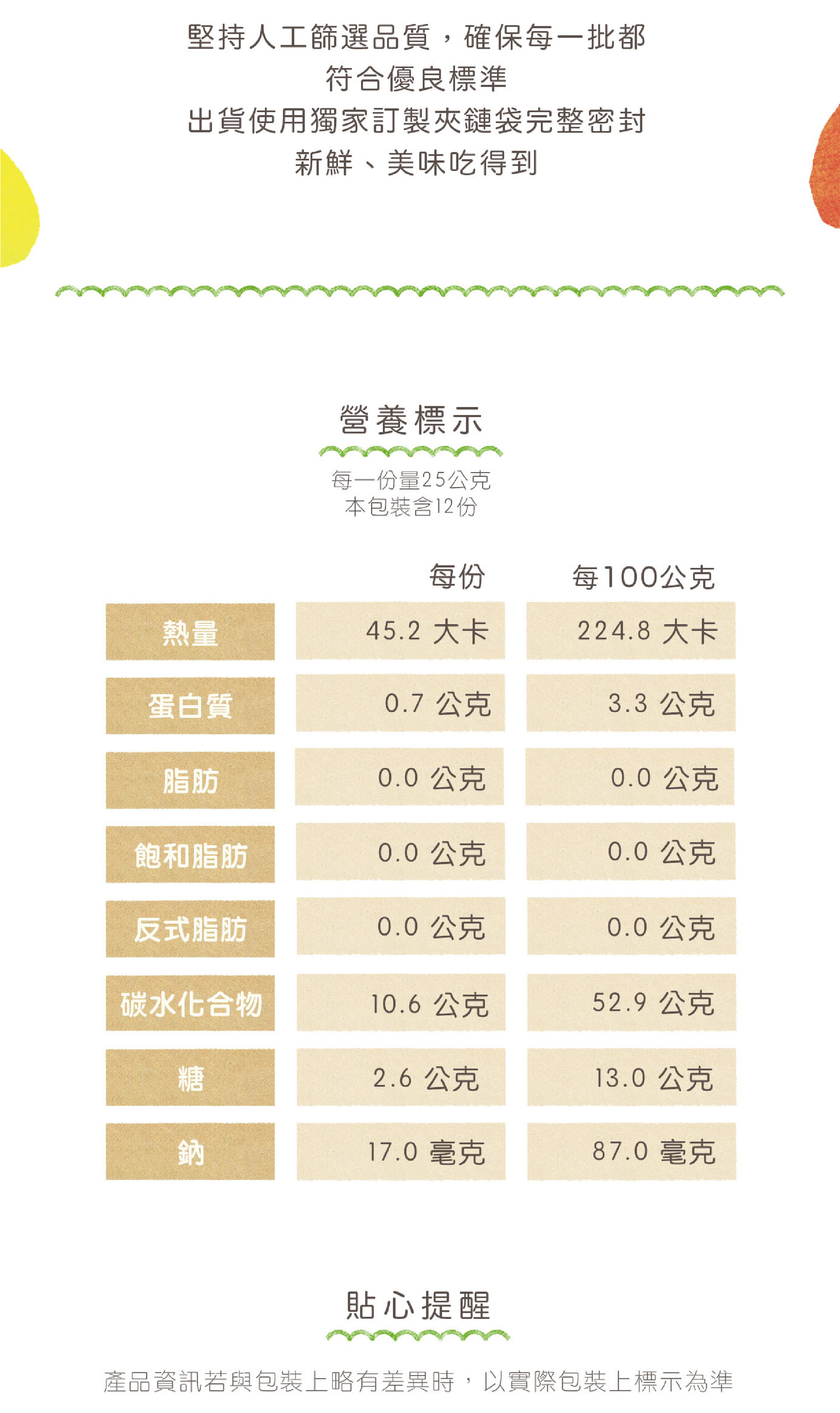 ・真實最對味,採低溫烘焙製程,全面鎖住營養與果肉自然的口感。