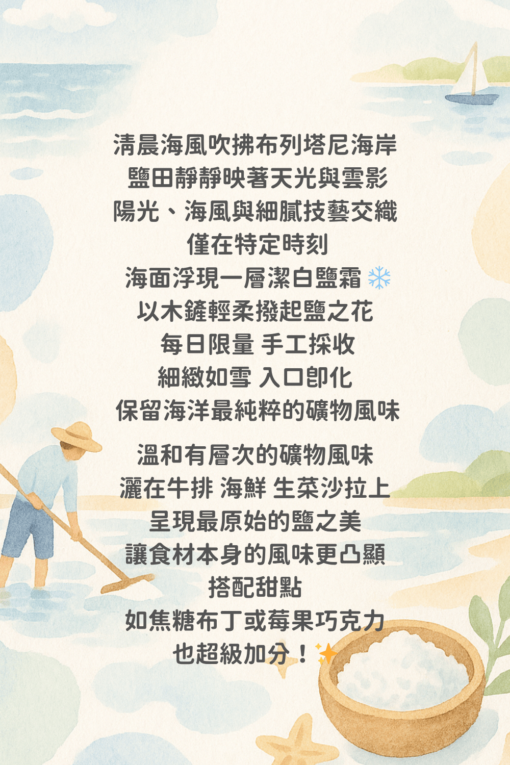 ✔️ 來自法國布列塔尼鹽田的手工鹽之花